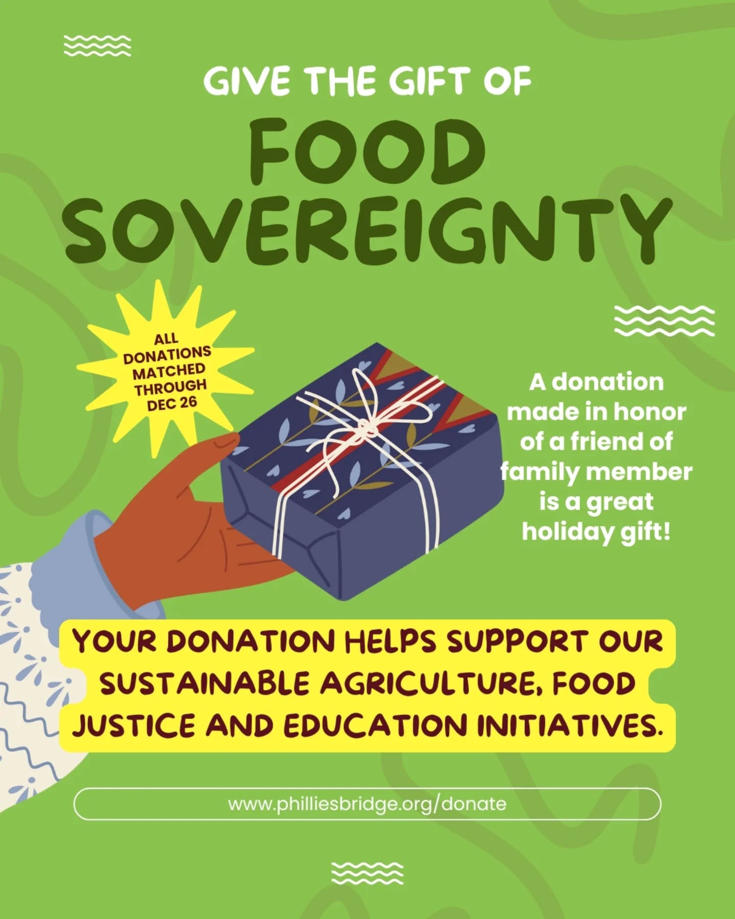 Phillies Bridge Farm Project’s mission is to develop and demonstrate sustainable agriculture; educate the community about food justice and the sources of healthy food; and provide access to sustainably grown produce for local community members, with a focus on food-insecure households.